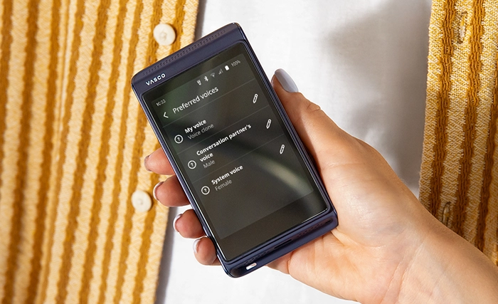 For those who like to have an option. Beyond the revolutionary Vasco My Voice feature, you can choose between male or female output voices. This lets you match the tone to any situation. Prefer a formal tone for business meetings, or something warmer for family conversations? Your translator, your rules.